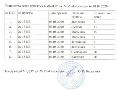 Дети, зачисленные в МБДОУ №55 «Непоседы» в 2019 году